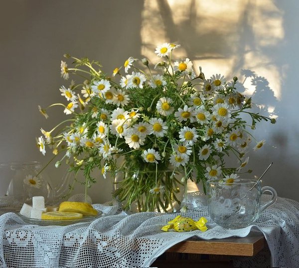 А на столе ромашки