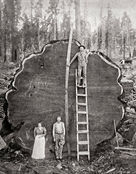 На этом редком фото конца XIX века — люди, позирующие у среза гигантской секвойи возрастом около 130...