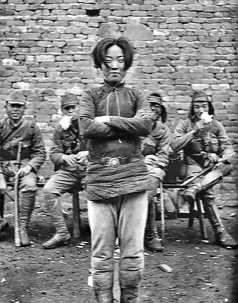 На фото — улыбающаяся девушка и солдаты.