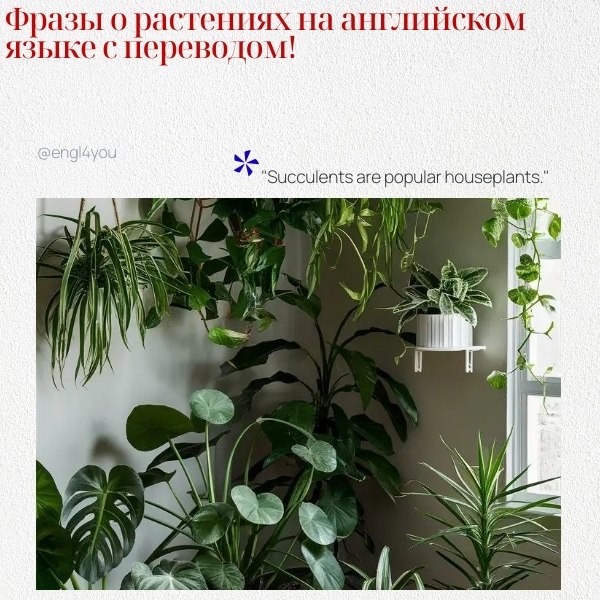 Вот несколько фраз о растениях на английском языке с переводом на русский: