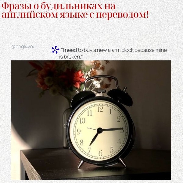 Вот несколько фраз о будильниках с переводом на русский: