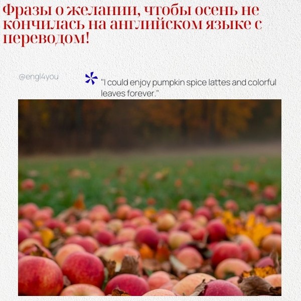 Вот несколько фраз о желании, чтобы осень не кончилась, с переводом на русский:
