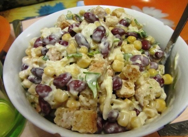 "Салат с фасолью и сухариками"