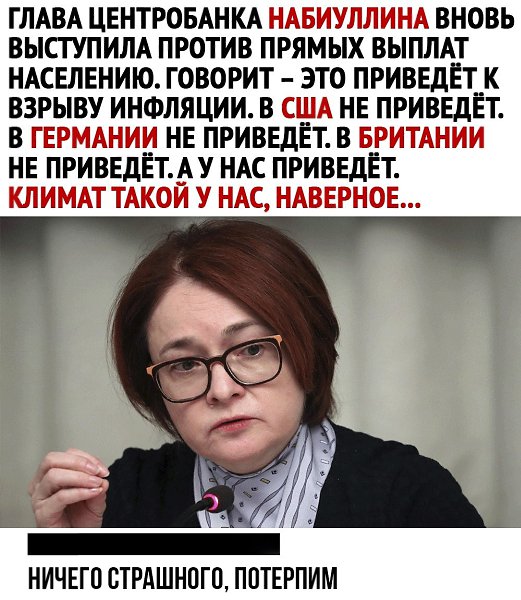Глава Центробанка выступила против прямой раздачи денег всем гражданам в условиях эпидемии.